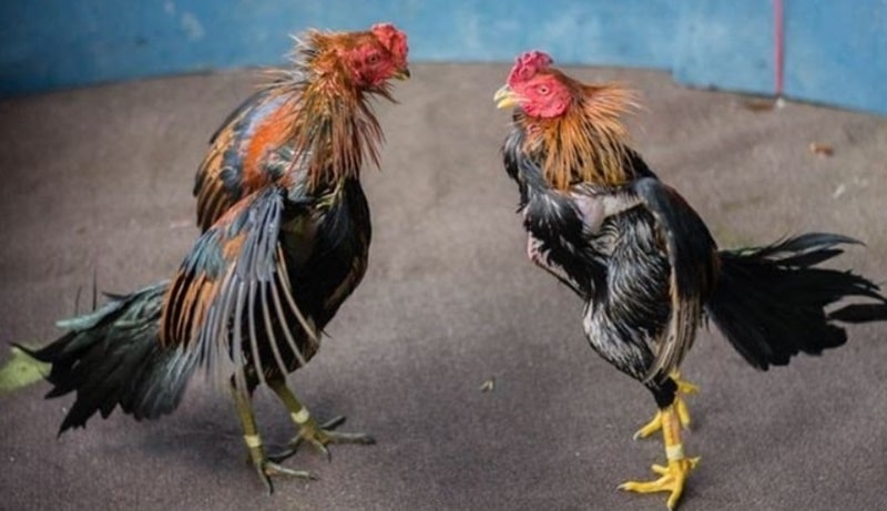 - Gà thể hiện sự hưng phấn, tràn đầy sức sống, sẵn sàng nhảy bổ vào bất kỳ con gà nào khác mà nó thấy.